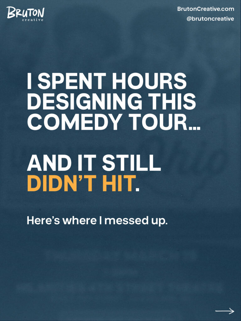 HERO (Full Width) Layout: Full-width section Background: Final “Laugh Across Ohio” flyer (slightly dimmed) Overlay: black gradient Content (Left aligned – Cols 2–7): H1: When Good Design Isn’t Enough Subhead: A case study on direction, not just design. Meta line: March Madness 2 / Laugh Across Ohio Campaign CTA Button: → Start the Breakdown QUICK […]