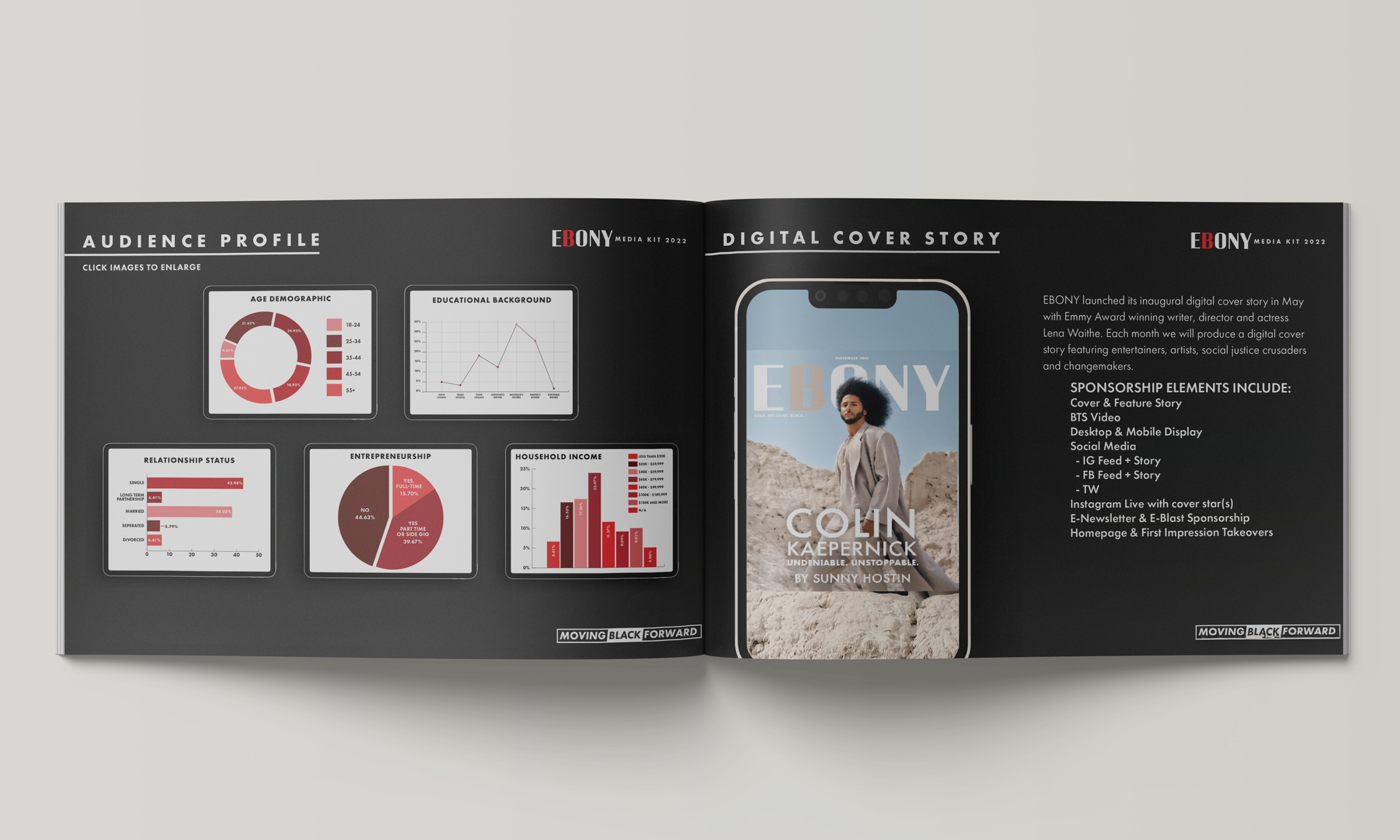 This was one of my first big projects when I got to EBONY. The goal of the media kit this year, in 2022, was to let the world know we were going completely digital as oppose to printing.